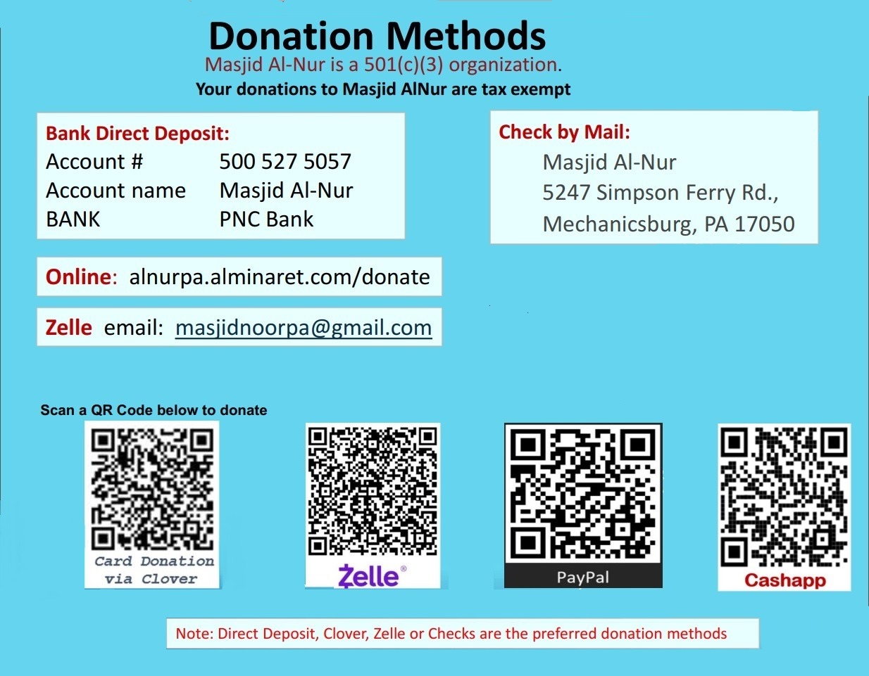 During our Blessed Month of Ramadan we have very limited space and we need to pay it off to be able to expand . We NEED your DONATIONS!